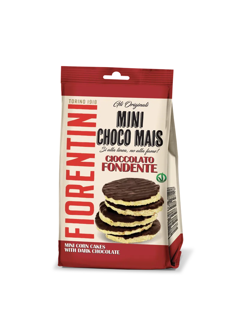 Home>Shop>Snack dolci>MINI GALLETTE DI MAIS RICOPERTE CON CIOCCOLATO FONDENTE 60G