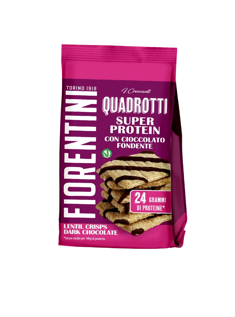 I Quadrotti Super Protein sono cialde a base di lenticchie rosse, legumi ricchi di proteine vegetali, ricoperte da irresistibile cioccolato fondente.