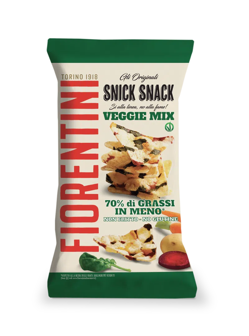 Patatine vegetali estruse utilizzate nella comparazione con il prodotto Veg Snick Snack – Veggie Mix Fiorentini riguardo al contenuto ridotto di grassi: